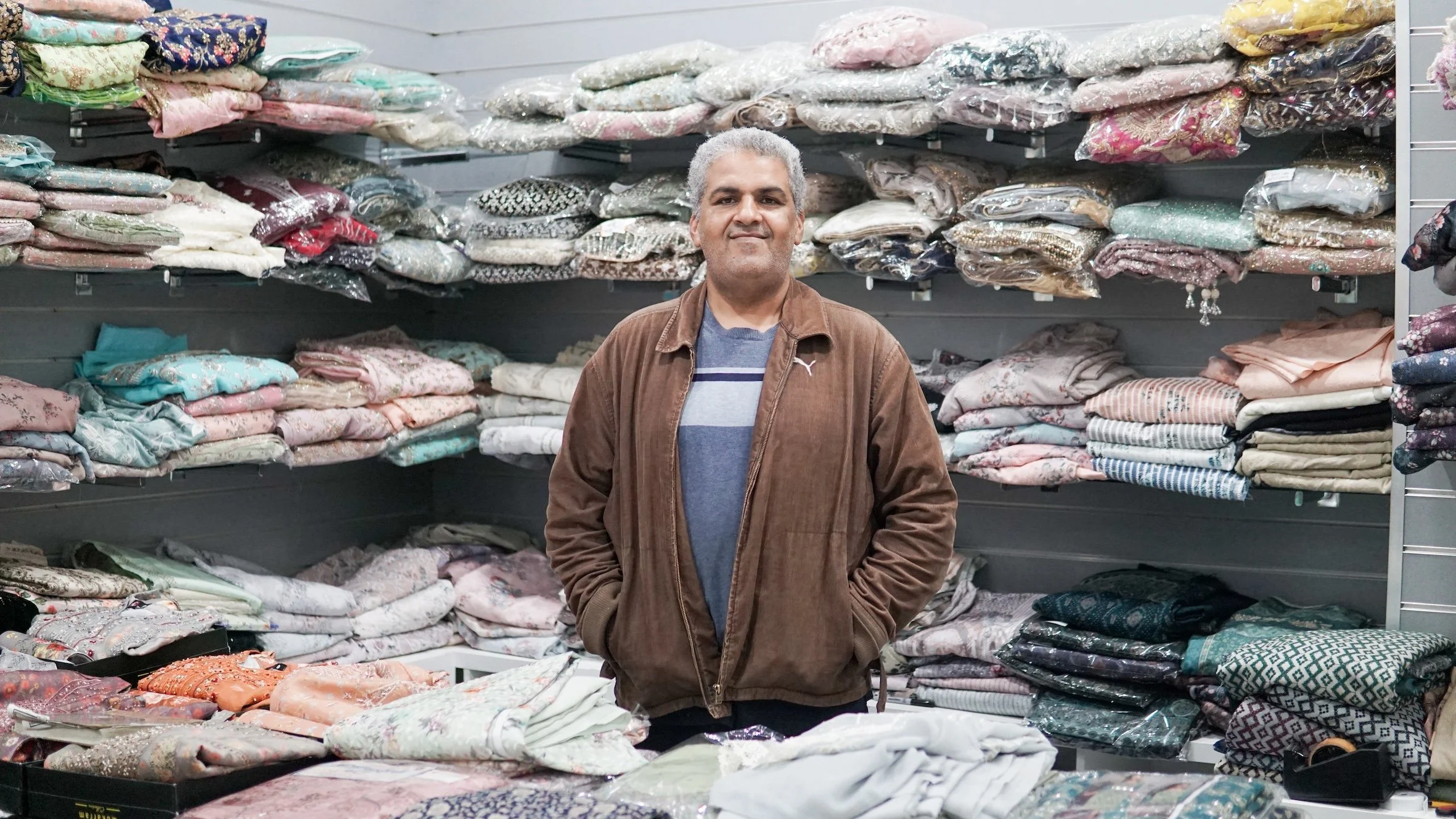 “We started our website during lockdown,” Kazim says. “We can cover the whole of the UK this way but not many shops are doing it because it’s hard to sell unstitched clothes online. So we spend on marketing and are very competitive on pricing.”