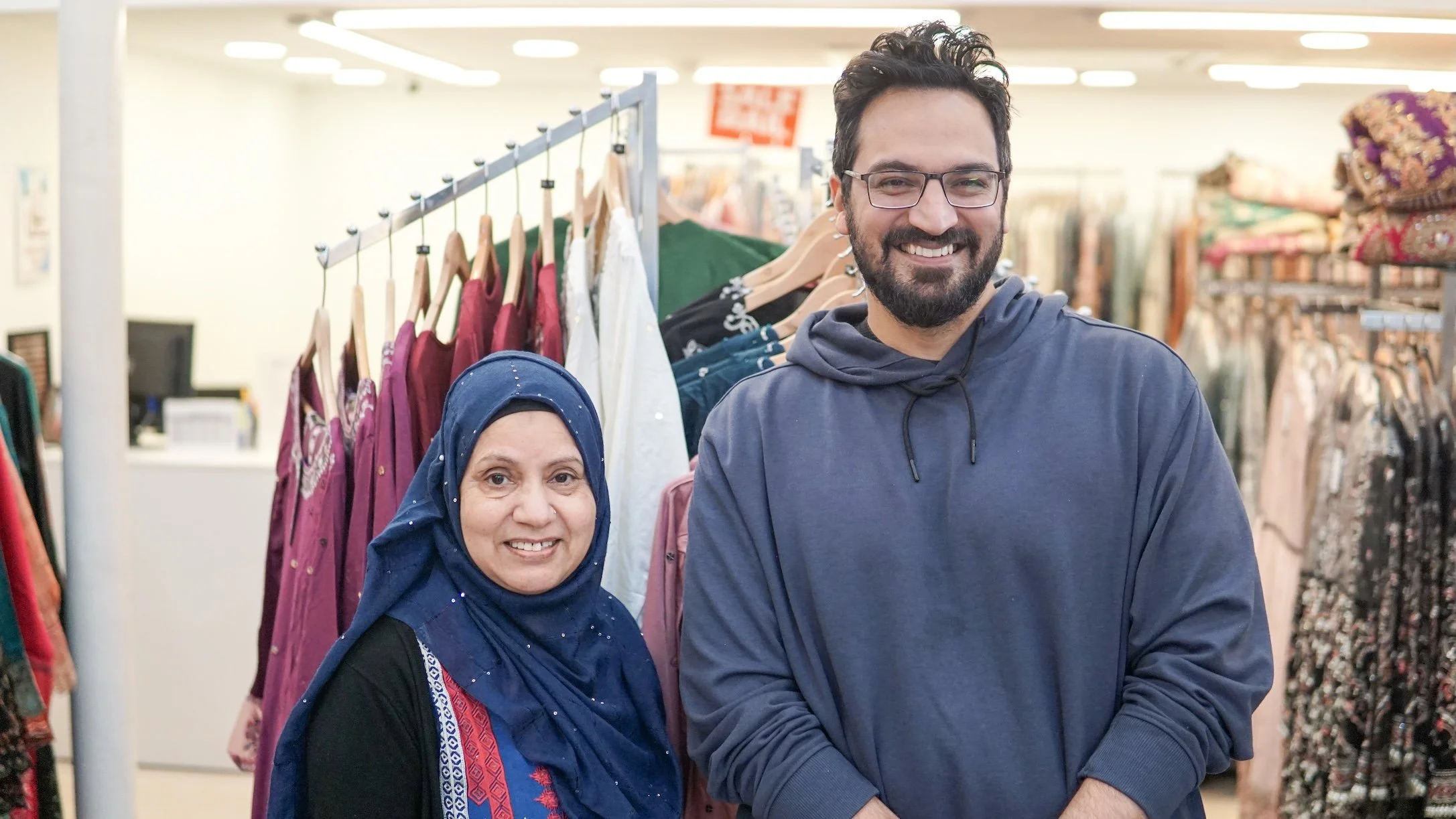 As she listens to the radio, her son Naveed walks around the shop adjusting the dresses, telling me all about the family business. “My mum opened this shop in 1978,” he says proudly, “she started selling fabrics in a bedroom in our house on Daisy Street, so it was a shop by day and a bedroom by night.”