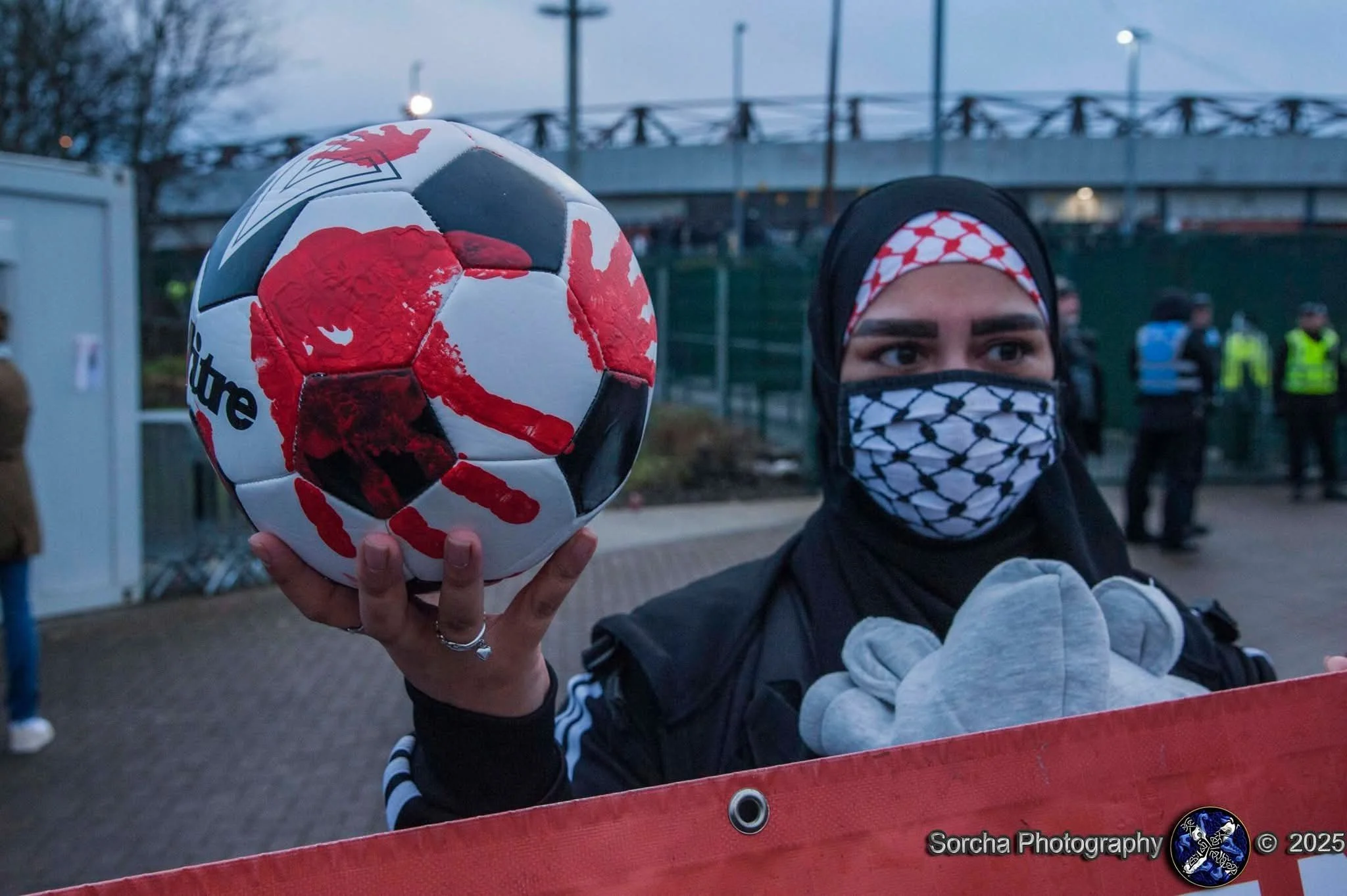 Mothers Against Genocide (MAG), an inclusive group of mothers organising against the genocide in Gaza, were also pictured infront of the stadium with prams, representing the thousands of children that have been killed in Gaza. UNICEF reports that over 64000 children have been killed and injured in Israeli attacks in the last two years.